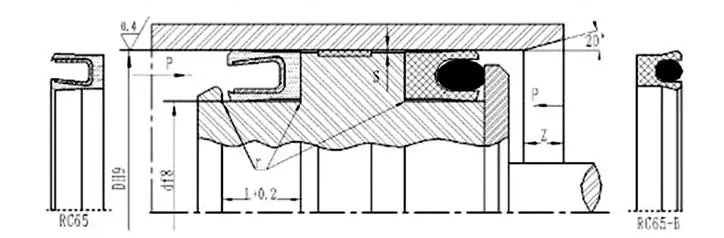 Den fjäderaktiverade tätningen RC65 är sammansatt av en fjäder av rostfritt stål och högpresterande plast. Den rostfria fjädern kan vara antingen en V-formad fjäder eller en O-formad fjäder.